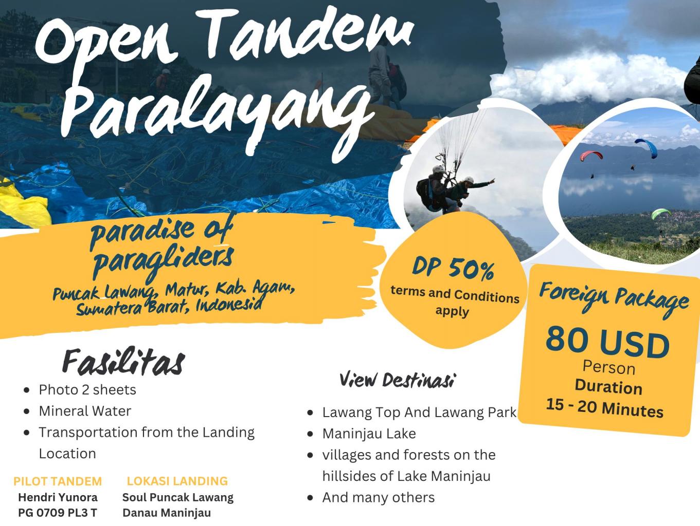 Nah ini mimin mau kasih info kalau @pesona_lawang Open Tandem Paralayang loh, ada 3 paket yang mimin sediakan.